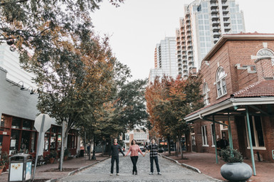 This family shoot was filled with lots of laughter! We had such a fun time together exploring Downtown Raleigh. We met at City Market, which is an older part of downtown - notice the cobblestone road! That's where we started and ended our time together. The hanging lights above the street are the perfect touch to this quaint little corner of downtown. From there we really just walked around finding good spots. Ask the people close to me what my worst skill in life is, and they will tell you one of two things - making decisions and... directions. So the Maps app came in handy. I wouldn't have made it without a GPS. We worked our way to Fayetteville Street, which is the street the Capitol building is on. We were able to find so many fun spots! My sweet husband, Kris, drove around and location scouted for me because I hadn't seen all the areas myself prior to the shoot. Because of this, all five of us had a way to get from location to location without the headache of finding and paying for parking. After we made it all the way to the Capitol and got some photos there, Kris picked us up, and we headed for Boylan Bridge. There's nothing super special about this bridge in and of itself, but turn to the left and you'll find a great view of the Raleigh skyline!
